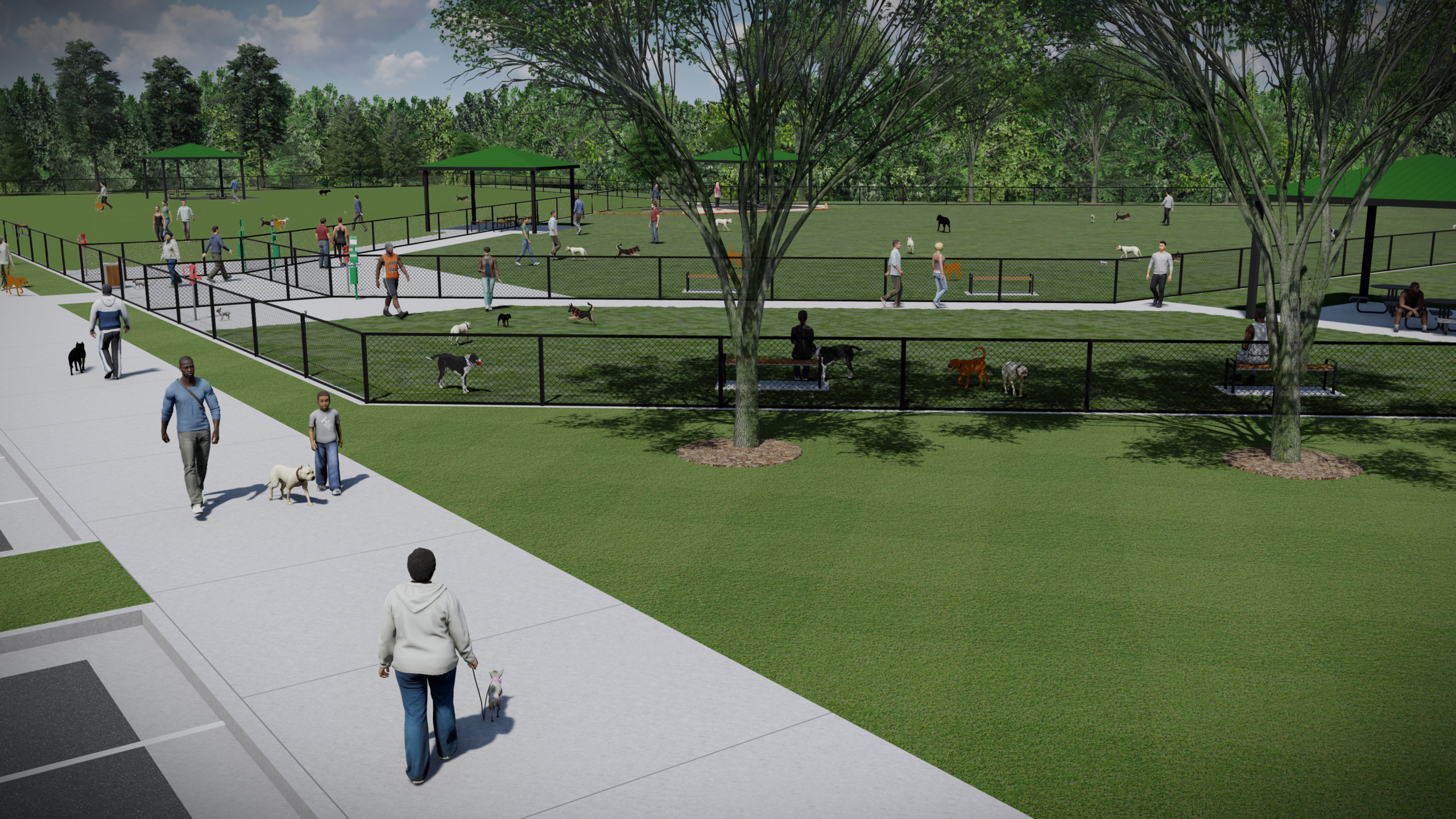 - Henrico’s largest dog park at 1.75 acres. The dog park will have natural grass with shade structures and seating areas similar to Short Pump Park.